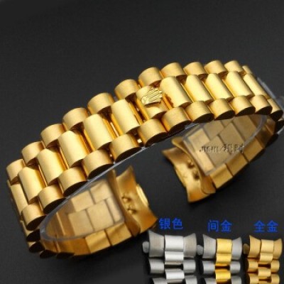 صفحه اصل > > Подходит для аккумулирующего ремешка времени, подходит для стального ремня Rolex с календарем, аксессуаров для часов, трех бусин, цепочки для часов, 20 мм, мужское золото(2 шт.)*2