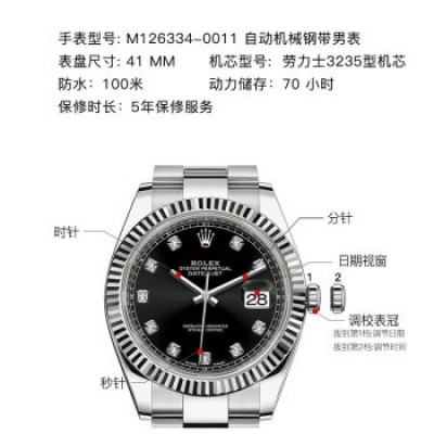 Швейцарские часы Rolex ROLEX, журнал, серия 41, автоматические механические мужские часы M126334-0011, черная пластина с бриллиантовой трехсеточной цепочкой