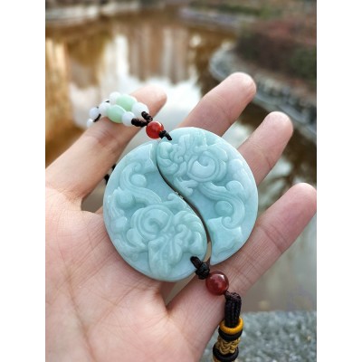 نخ یشم به شکل قلب طبیعی آویز جید اژدهای ققنوس تای چی ماهی