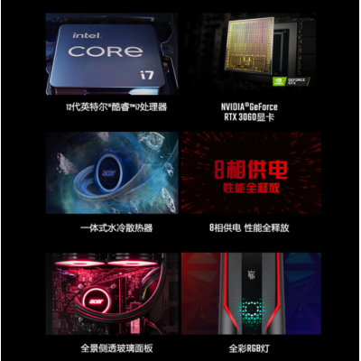Acer (Асер) Shadow Knight * Настольный игровой компьютер Huawei N97 с водяным охлаждением (12-е поколение i7-12700 RTX3060 16G памяти 512G твердотельного накопителя с боковым проницаемым водяным охлаждением)